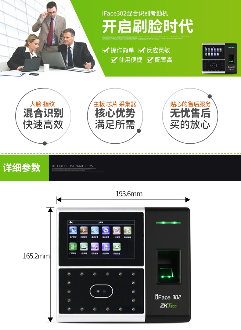 iface702人臉混合識別指紋考勤機